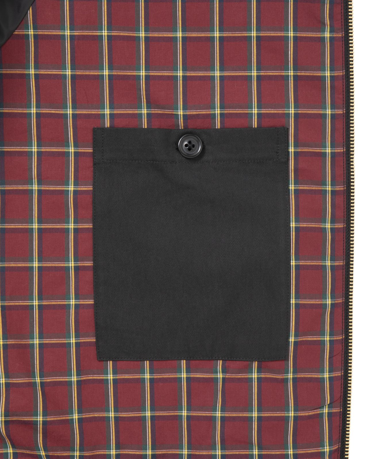 背裏にはチェック生地 袖裏にはポリエステルを使用し ています。