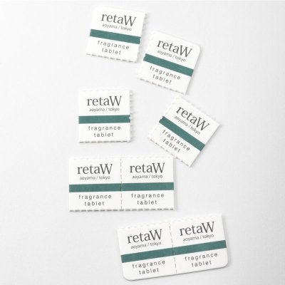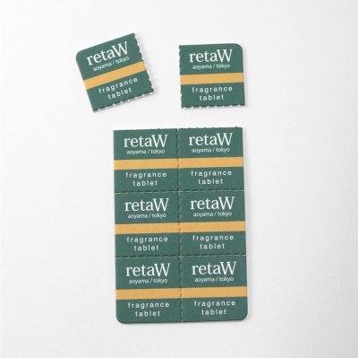 厚い紙状のシート(8ピースに分割可)に、retaW各種の芳香が閉じ込められています。