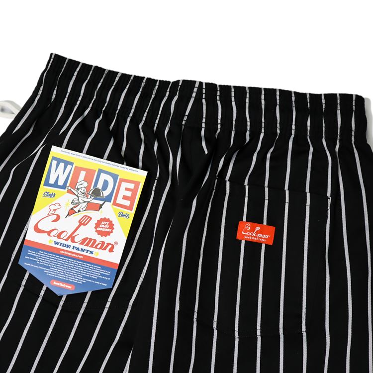 COOKMAN Wide Chef Pants Stripe (Black) [231-11839]
